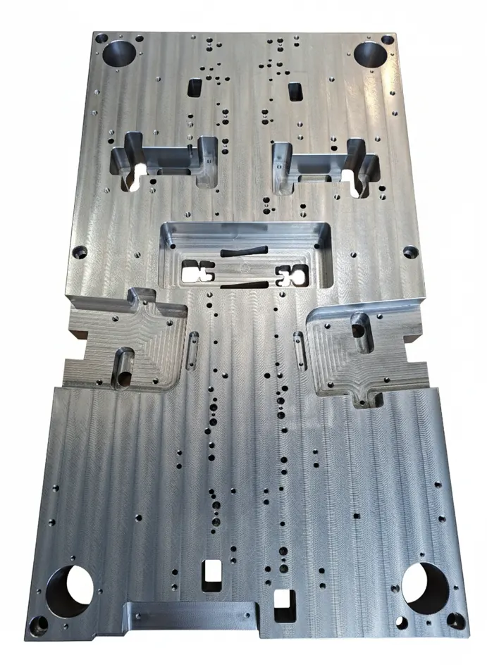 - Základové desky pro formy: Výroba desek s vodícími otvory, kapsami pro nástrojárny a lisovny.